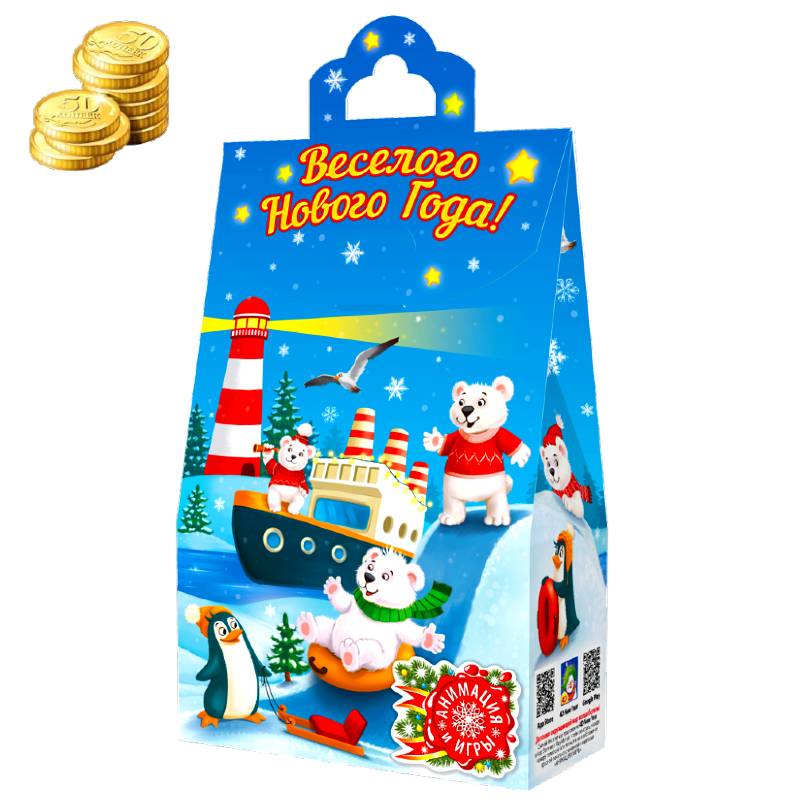 Детский новогодний подарок в картонной упаковке весом 1000 грамм