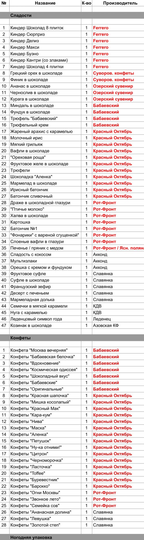 1. Проверить, можно ли внести изменения в состав подарка. Если нет, то скорее всего наборы были собраны еще летом из конфет, произведенных еще раньше